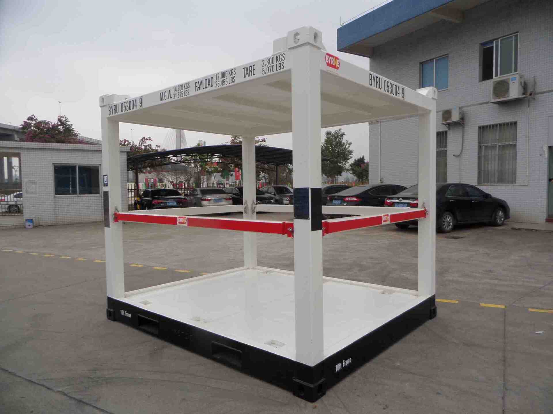 | 10ft lifting frame (fixed roof) ISO/CSC | 9 | 2991 x 2438 x 2591 (high) | 10'0" x 8'0" x 8'6" (high) | 2,300 | 5,070 | 12,000 | 26,455 |