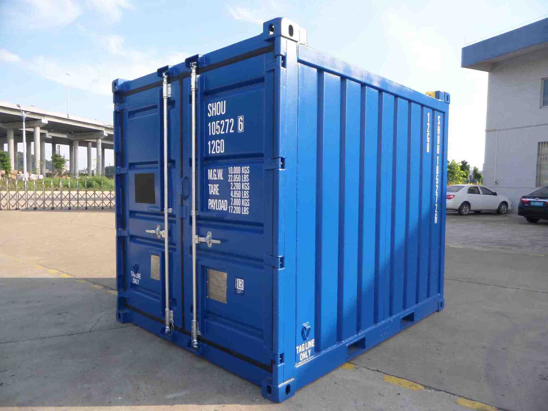 | 10ft Dry goods ( corrugated panel ) ISO/CSC | 20 | 2991 x 2438 x 2591 (high) | 10'0" x 8'0" x 8'6" (high) | 2,200 | 4,850 | 7,800 | 17,196 |