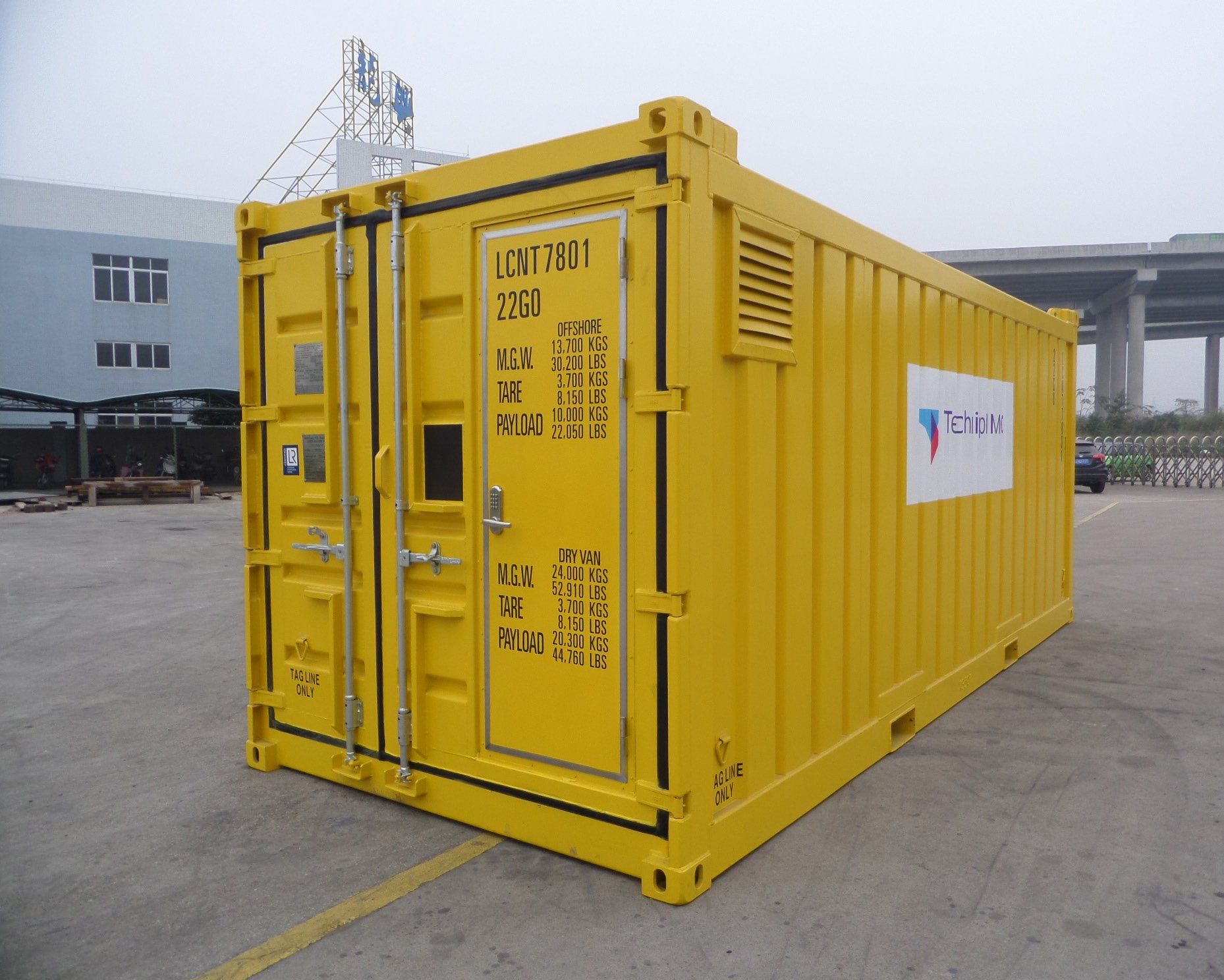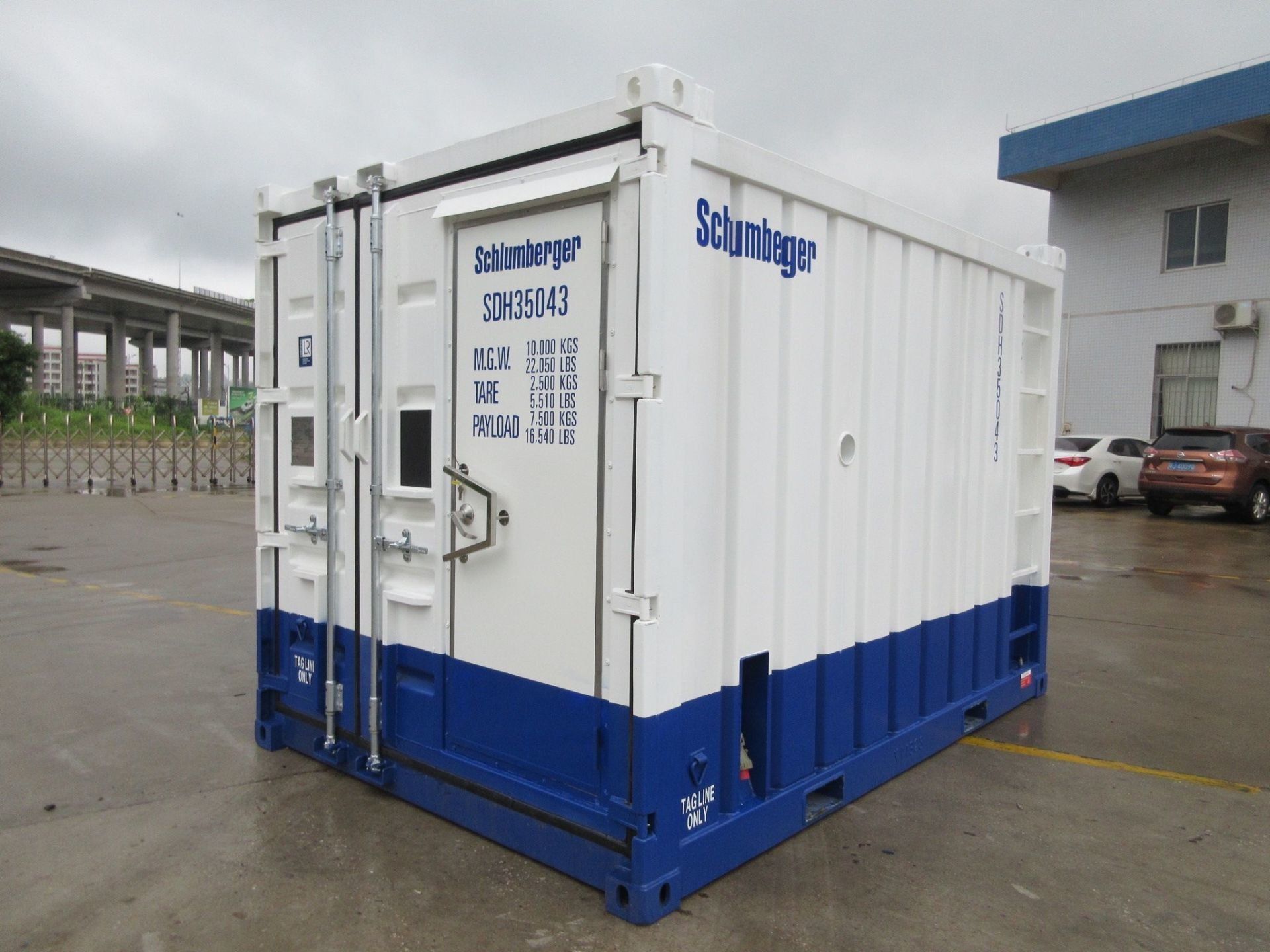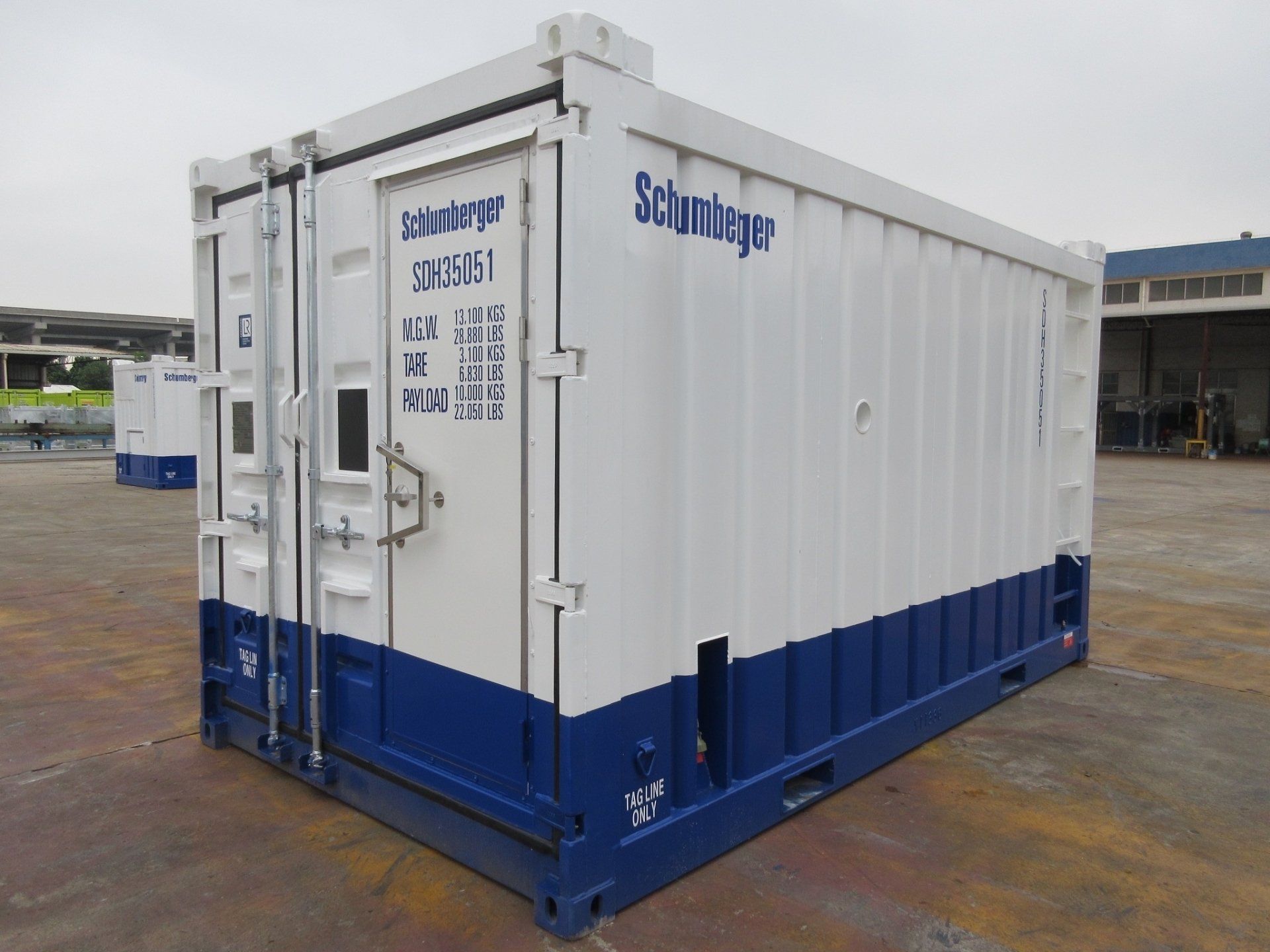 To make for efficient depot operation, all model types are fitted with fork lift pockets and they can be multi stacked with their slings fitted. A wide range of applications is possible. Options include internal power and lighting, (including Ex/ATEX equipment, cabling and switching), transformers and frequency converters, insulation, air conditioning and/or heating, work benches, cupboards (including hazardous), shelving, racking, vices, chain hoists, personnel doors and escape hatches. For empty positioning, 10ft units can be paired to create a 20ft ISO module enabling efficient delivery by containership.